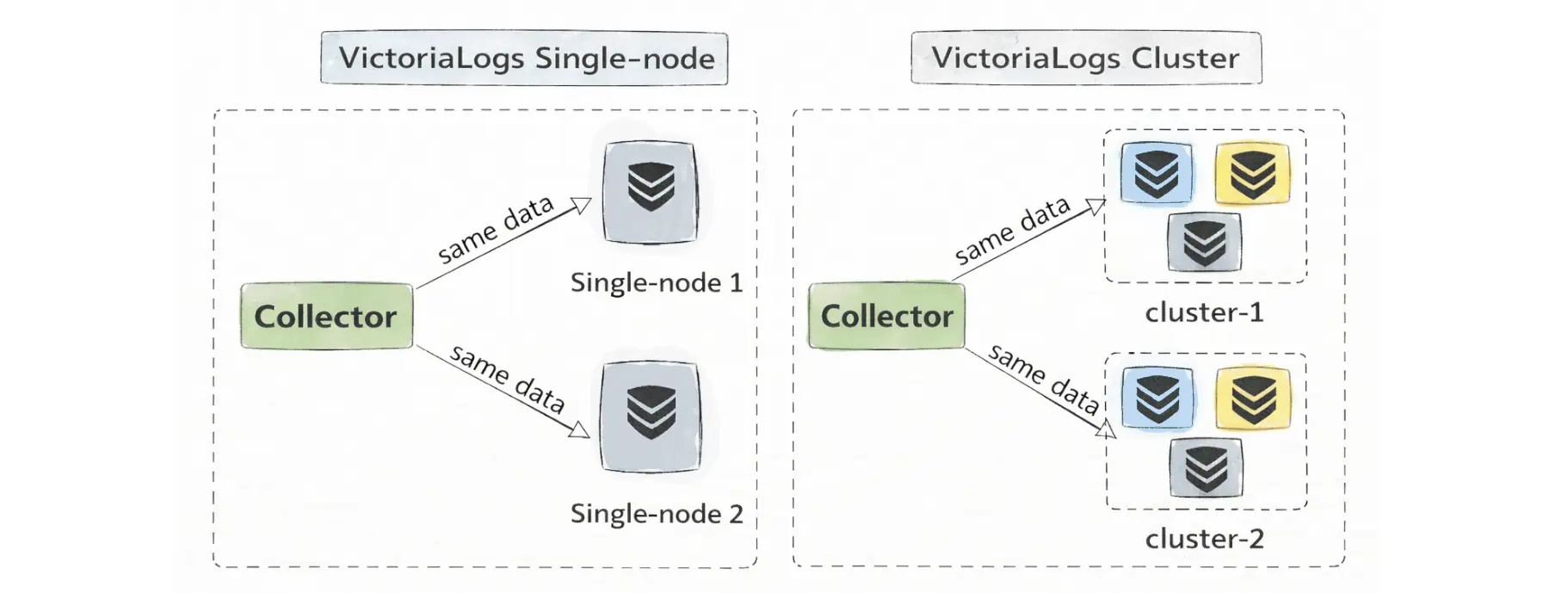 The cluster architecture follows the same philosophy as VictoriaMetrics but with its own set of roles: vlinsert, vlselect, and vlstorage. These are all the same binary started with different flags, not separate products or builds. This was a point of debate in the thread, one commenter argued that VictoriaLogs cluster mode is "more complicated than Elasticsearch" because it has three separate component roles. Valialkin (CTO of VictoriaMetrics) replied that the separation is explicit by design, not accidental complexity. Phuong Le's architecture blog post makes this even clearer with diagrams: you start with a single node, and when you outgrow it, you add more storage nodes and point your gateway instances at them.
